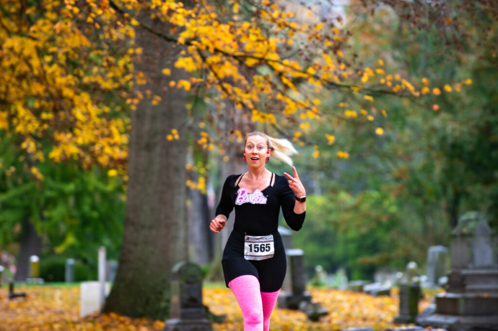The event draws a wide crowd—seasoned 5K runners looking to try something different, families pushing strollers, students, local organizations, and community members committed to supporting the cemetery’s mission. Many participants embrace the theme by dressing in light Halloween-inspired costumes or Tombstone Trot T-shirts, adding a fun and festive spirit to the morning. After the race, attendees often stay to enjoy refreshments, take photos by some of the cemetery’s most iconic monuments, and learn more about ongoing preservation projects.