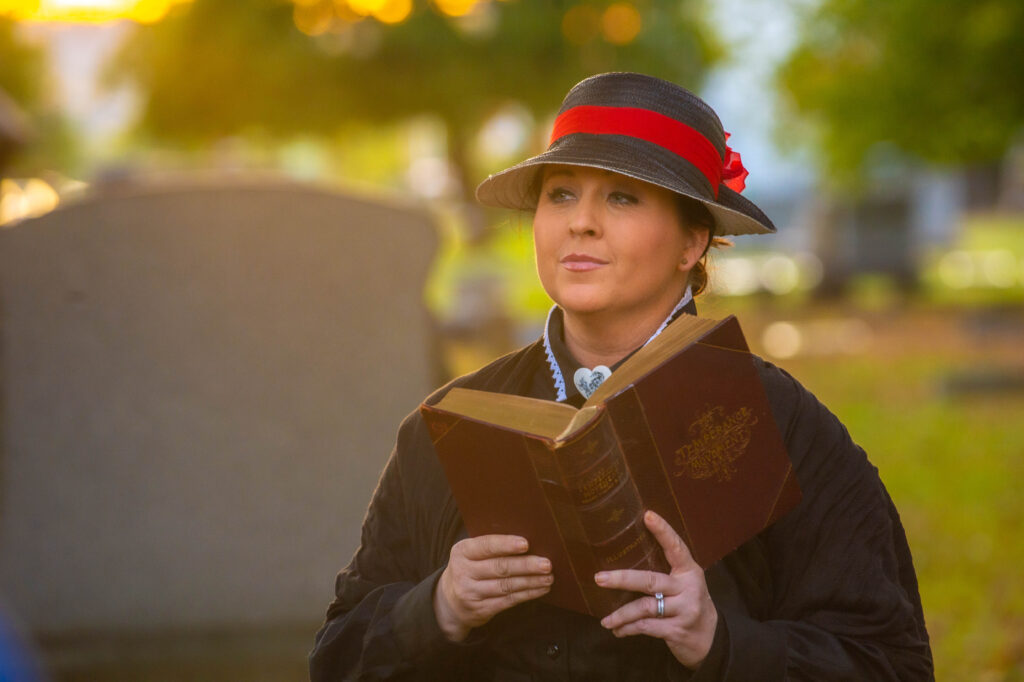The decision to host the play outdoors—on the grounds where these individuals are buried—is intentional and meaningful. The setting provides an authentic backdrop that no traditional theater can replicate. Walking through the cemetery as scenes unfold allows the audience to connect emotionally and physically with the stories being told. It transforms the cemetery from a quiet place of remembrance into a living classroom, reminding visitors that history is not distant—it is right beneath their feet. The natural stillness of the setting adds to the reflective, reverent tone of the production, while the changing autumn light creates a powerful atmosphere.