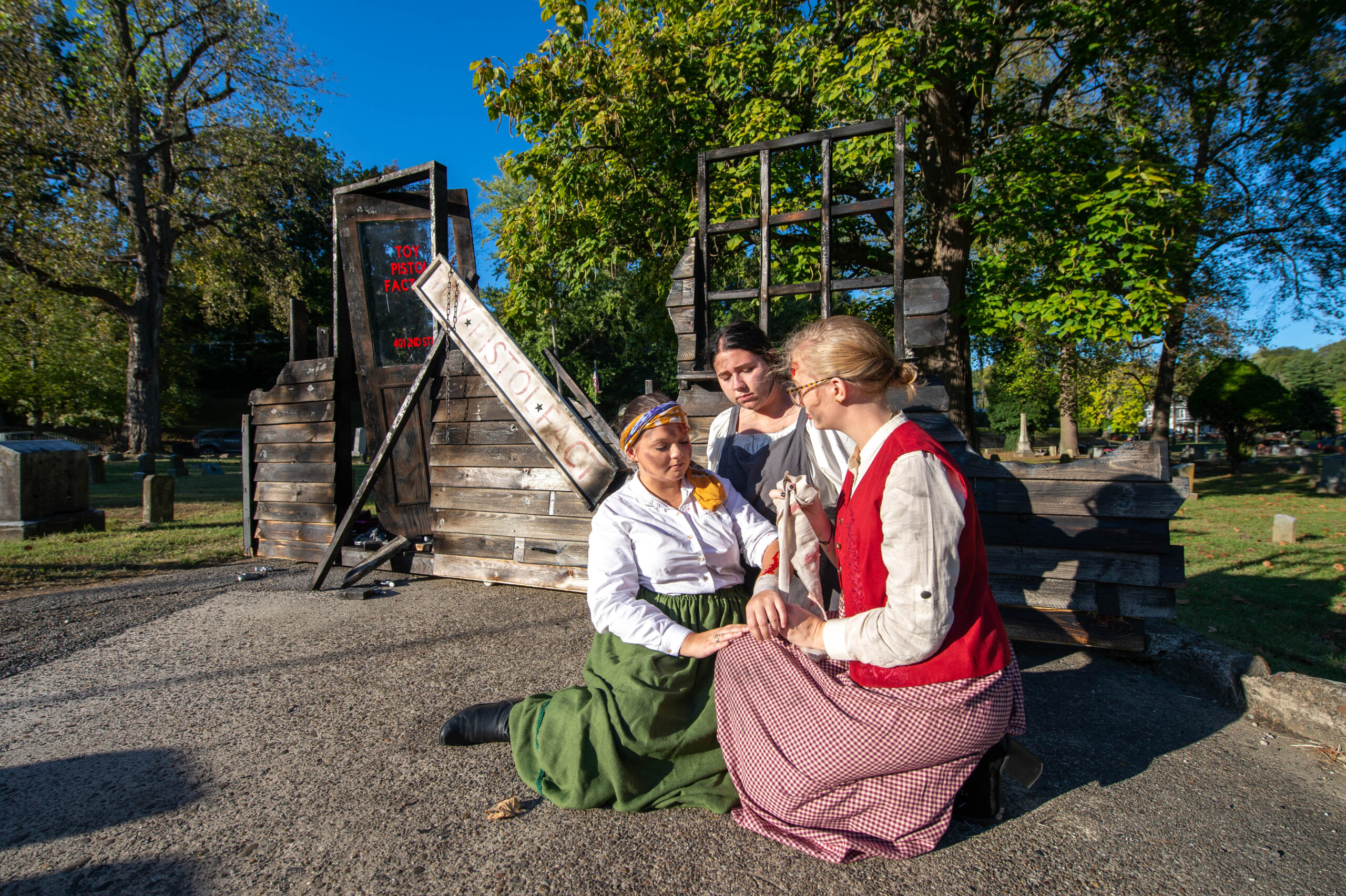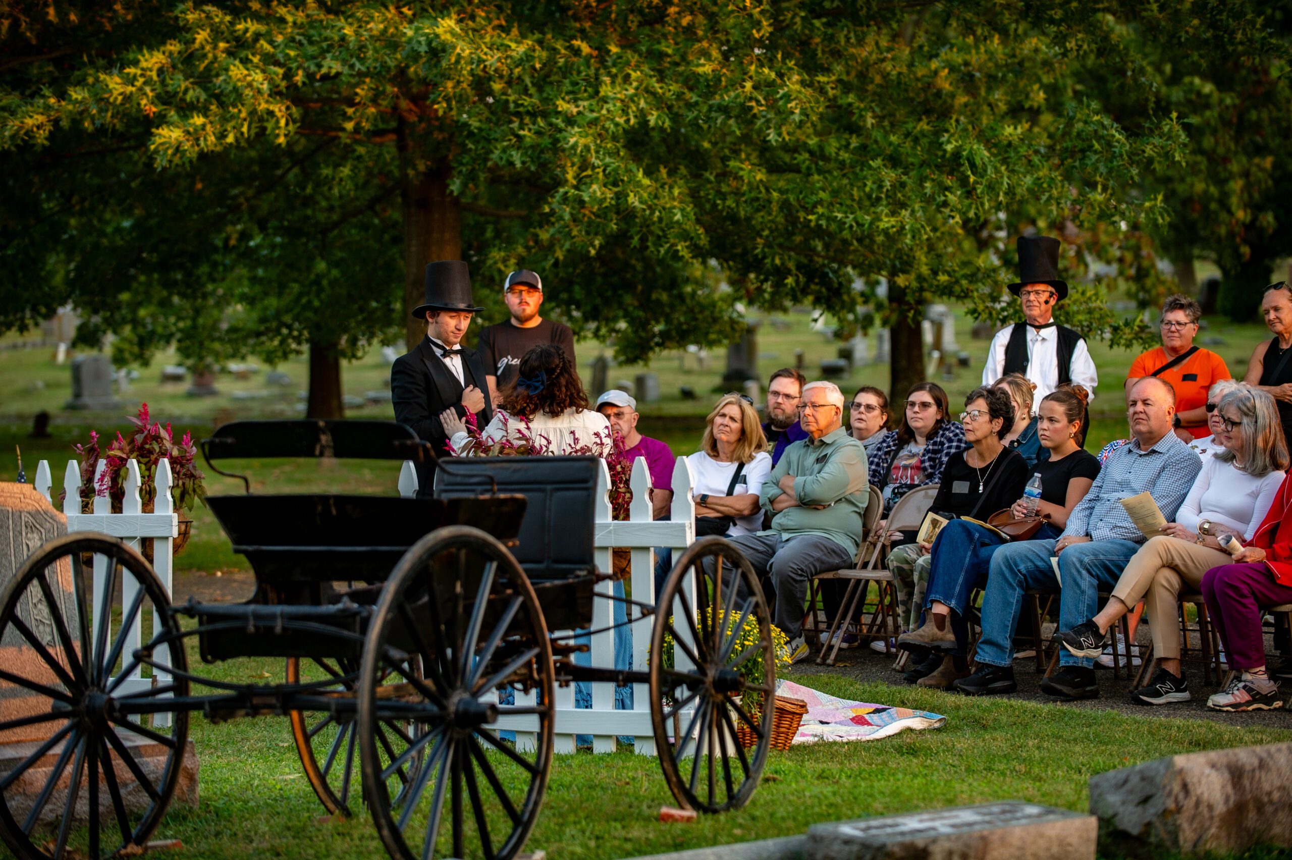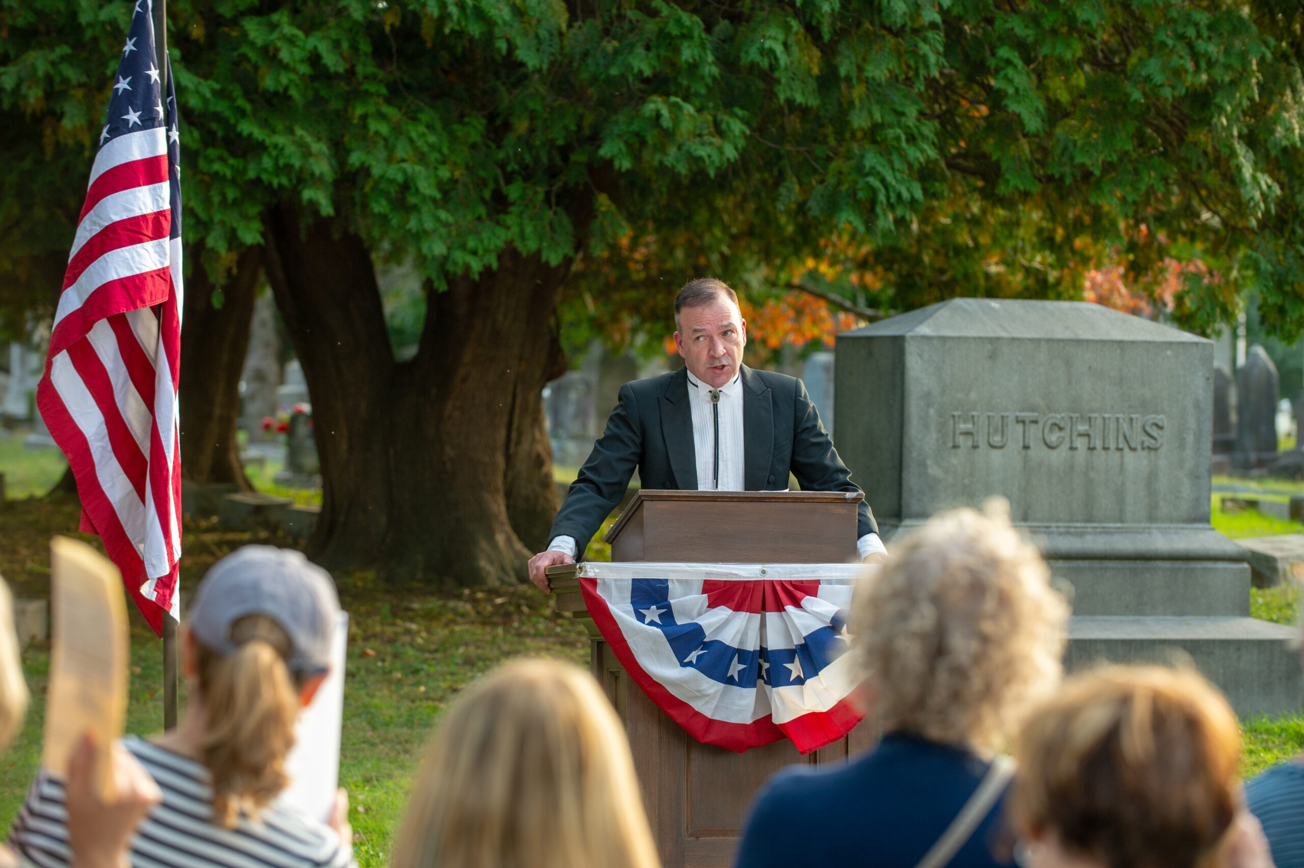 The decision to host the play outdoors—on the grounds where these individuals are buried—is intentional and meaningful. The setting provides an authentic backdrop that no traditional theater can replicate. Walking through the cemetery as scenes unfold allows the audience to connect emotionally and physically with the stories being told. It transforms the cemetery from a quiet place of remembrance into a living classroom, reminding visitors that history is not distant—it is right beneath their feet. The natural stillness of the setting adds to the reflective, reverent tone of the production, while the changing autumn light creates a powerful atmosphere.