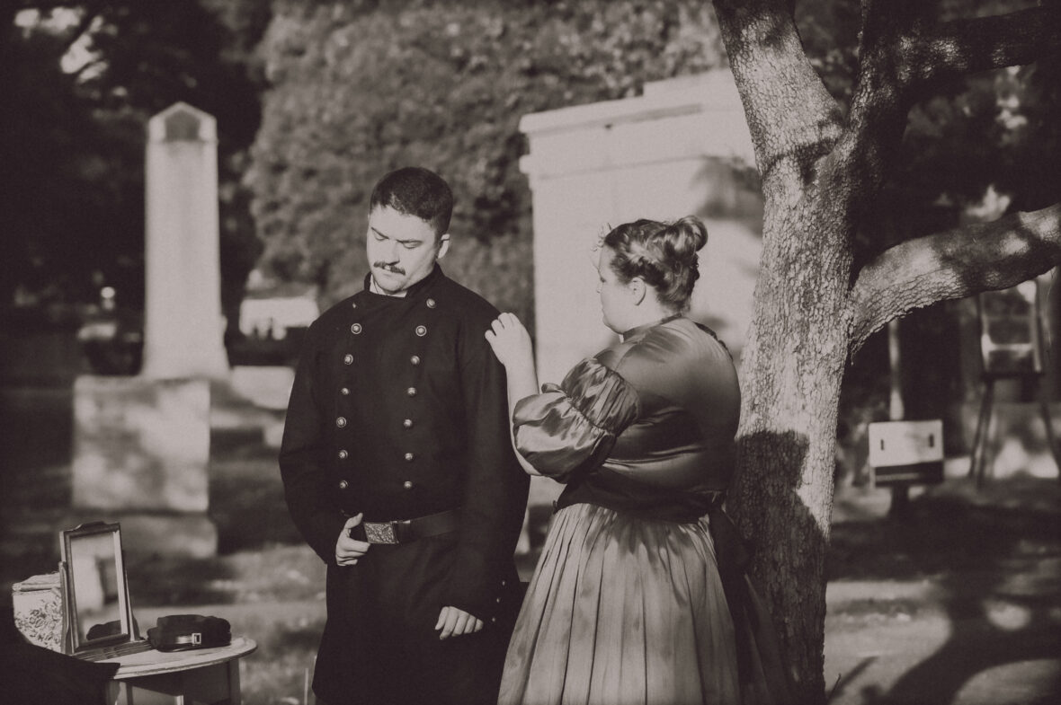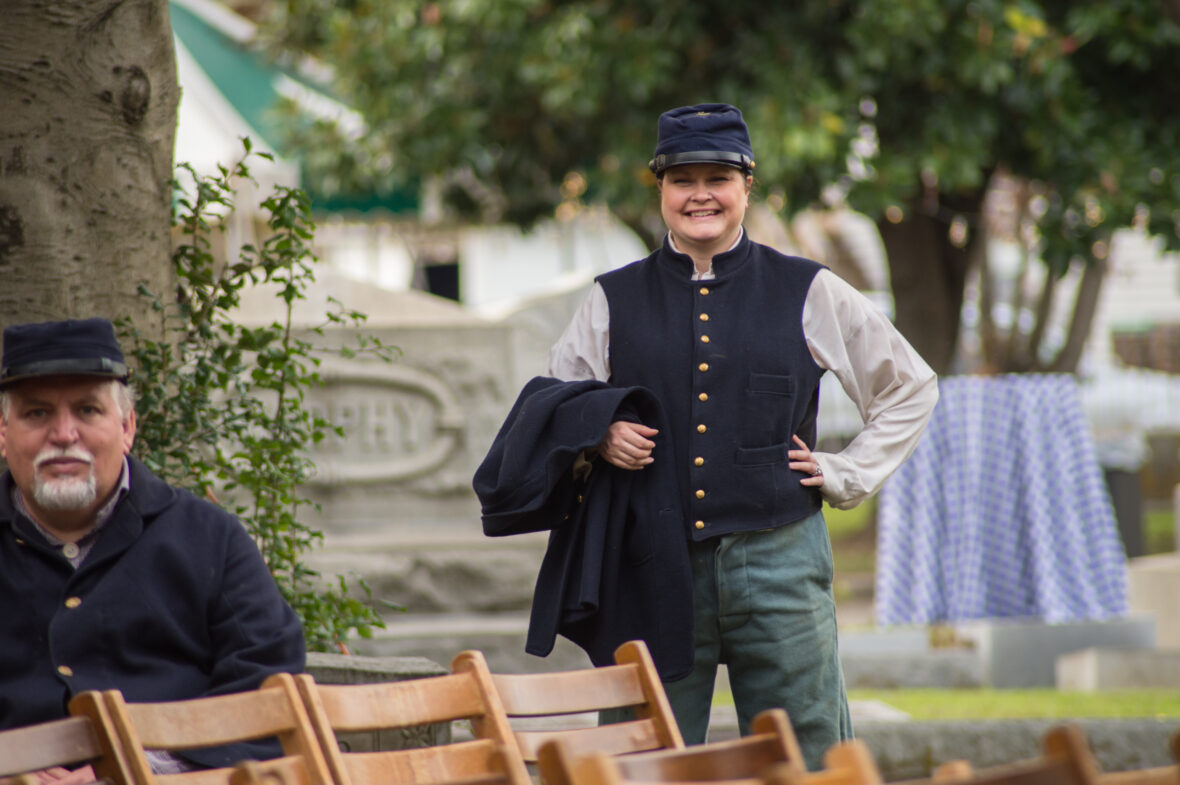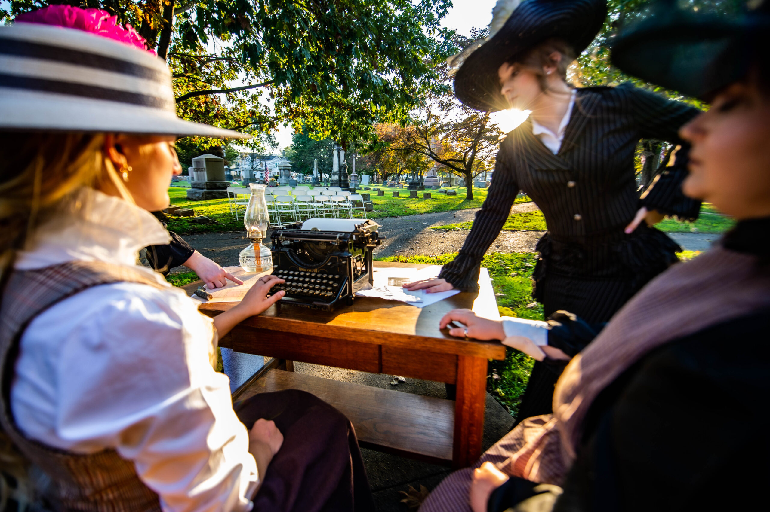The decision to host the play outdoors—on the grounds where these individuals are buried—is intentional and meaningful. The setting provides an authentic backdrop that no traditional theater can replicate. Walking through the cemetery as scenes unfold allows the audience to connect emotionally and physically with the stories being told. It transforms the cemetery from a quiet place of remembrance into a living classroom, reminding visitors that history is not distant—it is right beneath their feet. The natural stillness of the setting adds to the reflective, reverent tone of the production, while the changing autumn light creates a powerful atmosphere.